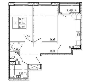 2-8 квартир на этаже. Большой выбор небольших квартир. Студии, 1-комнатные и евродвушки от 30 до 60 м2