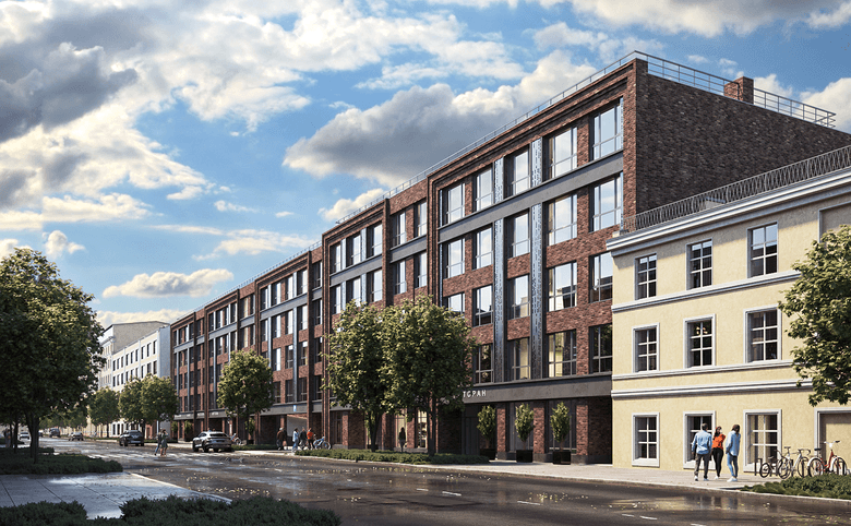 Дом гармонично включен в контекст исторической застройки середины XIX – начала ХХ века, где тон задают классические краснокирпичные корпуса заводов им.Калинина и им.Козицкого
